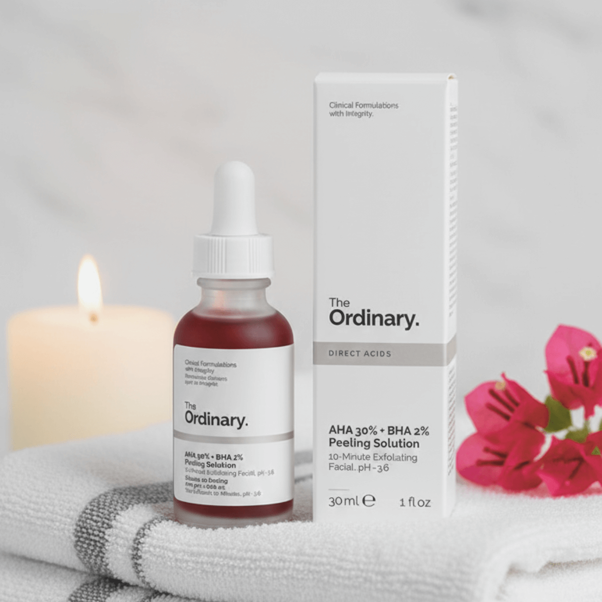 La combinación de AHA al 30% (ácido glicólico) y BHA al 2% (ácido salicílico) produce una exfoliación química de alta potencia dirigida a múltiples capas de la piel.